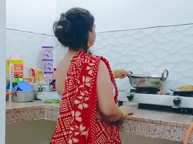 Tamil kundi maami gets lucky with a bull in the kitchen