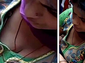 Top view of aunty's ample bosom and cleavage