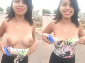 Cute girlfriend flaunts her hot breasts in public