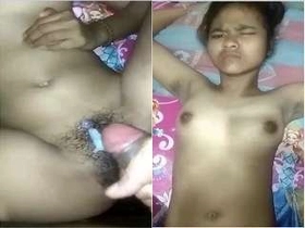 College girl enjoys solo play with her fingers