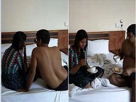 Indian boyfriend and girlfriend engage in steamy sex in a small room