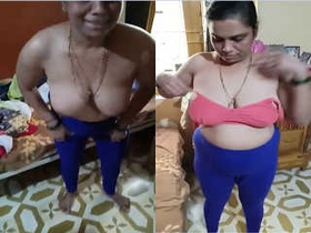 Boudi's big boobs and sexy body in a video recording by hubby
