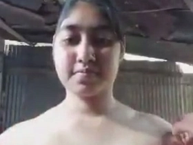 Exclusive video of a cute Indian amateur girl showing off her natural boobs