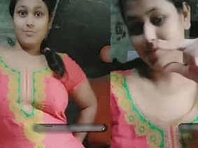 Cute desi girlfriend flaunts her breasts on video call