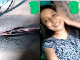 Neha, a sexy Indian girl, pleasures herself with her fingers in a selfie video