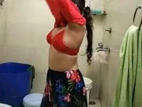 Clear video of a cute Indian girl bathing with her face not blurred
