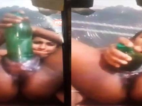 Country girl tries out a big bottle in her pussy