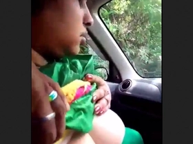 Bhabi's big boobs and sexy curves in a car blowjob