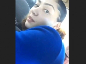 Enjoying a passionate ride with her BF in the back seat