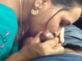 Desi wife gives her husband a blowjob in the car