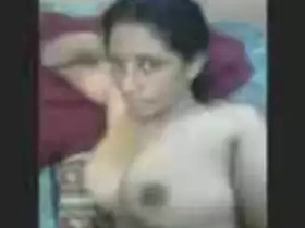 Desi girl masturbates with small boobs on display
