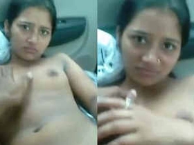 Amateur Indian girl gives a show of her big tits and masturbates