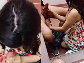 Indian college girl gives a blowjob in the dressing room