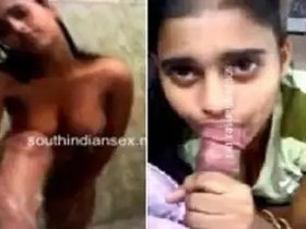 Part 2 of Indian girl's sizzling boob and oral action