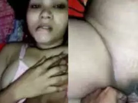 Indian girl masturbates with her fingers in selfie video