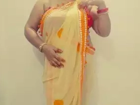 Mature aunty teases in sari and pleasures herself with fingers