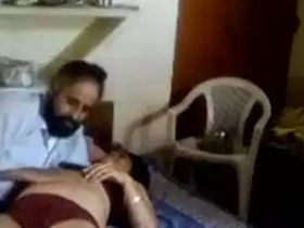 Desi girl gives her uncle a blowjob for the first time at home