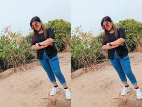 A stunning Indian couple enjoys a steamy outdoor handjob session