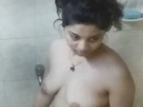Indian girl with large breasts performs solo sex at home