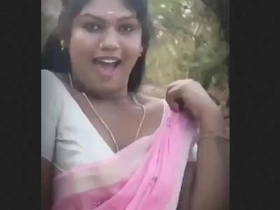Amateur Indian bhabhi bares her breasts and pussy in village video