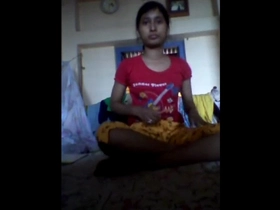 A charming Indian woman flaunts her breasts and intimate area on video