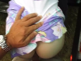 Aunty's boobs get a sensual massage from crowd member's hand