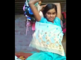 Amateur Indian babe strips down to sari and flaunts her body part