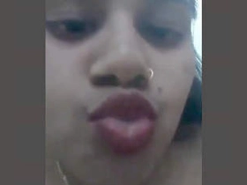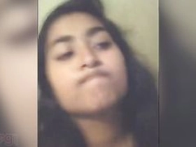 Indian girl with a cute face pleasures herself in a video