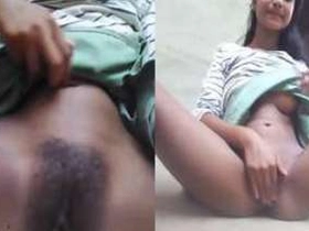 Outdoor sex MMS featuring a village girl's hairy pussy in the jungle
