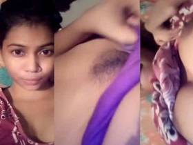 Cute desi girl flaunts her hairy pussy and big boobs in solo video