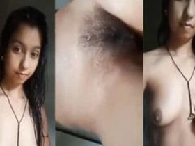 Exclusive Indian girl's nude selfie video with big boobs and hairy pussy