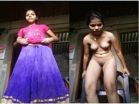 Cute desi girl captures her nude body in a selfie video