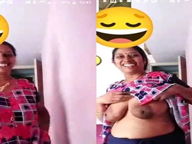 Mature village aunty flaunts her big boobs in a selfie video