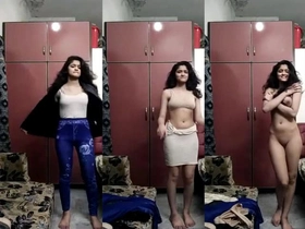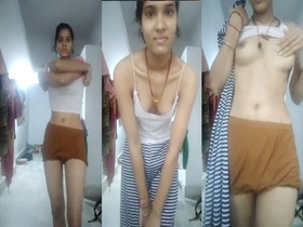 Indian girl's nude selfie in solo striptease video