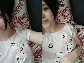 A young Indian girl from Ahmedabad enjoys solo play in a homemade video