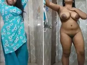 Naked Indian girl shows off her body in the bathroom