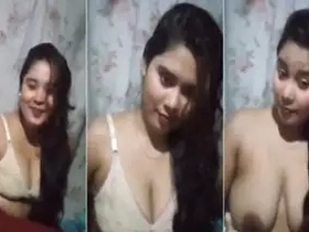 Watch a stunning Bengali girl flaunt her breasts in a seductive manner