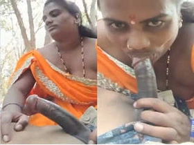 Indian wife gives a blowjob in the village
