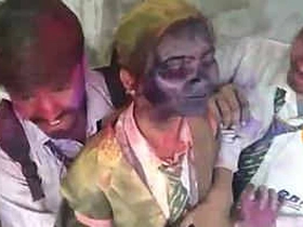 Desi aunty takes on two guys in hardcore video